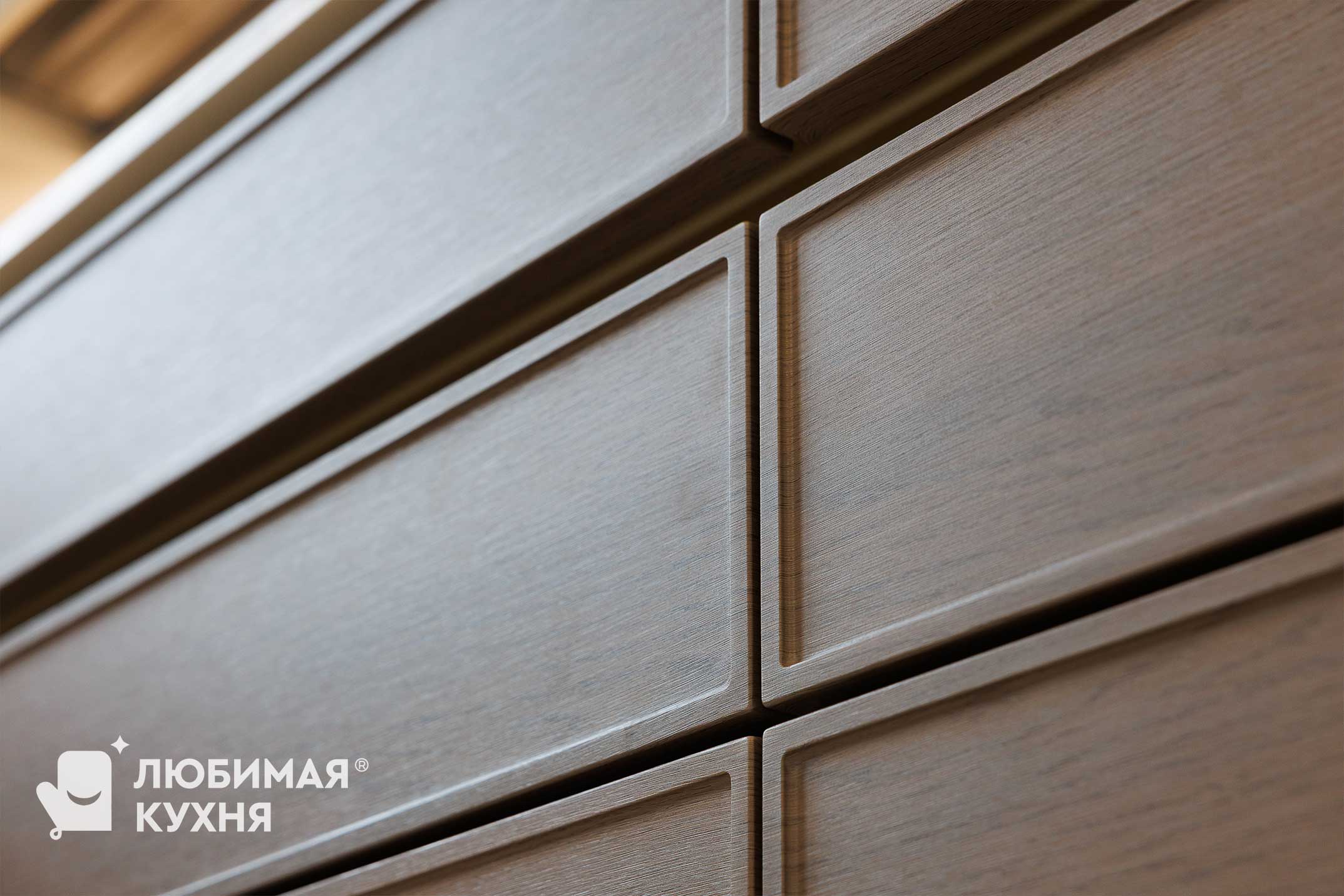 Эта кухня выполнена в элегантном современно-классическом стиле с акцентом на свет, пропорции и благородные материалы.