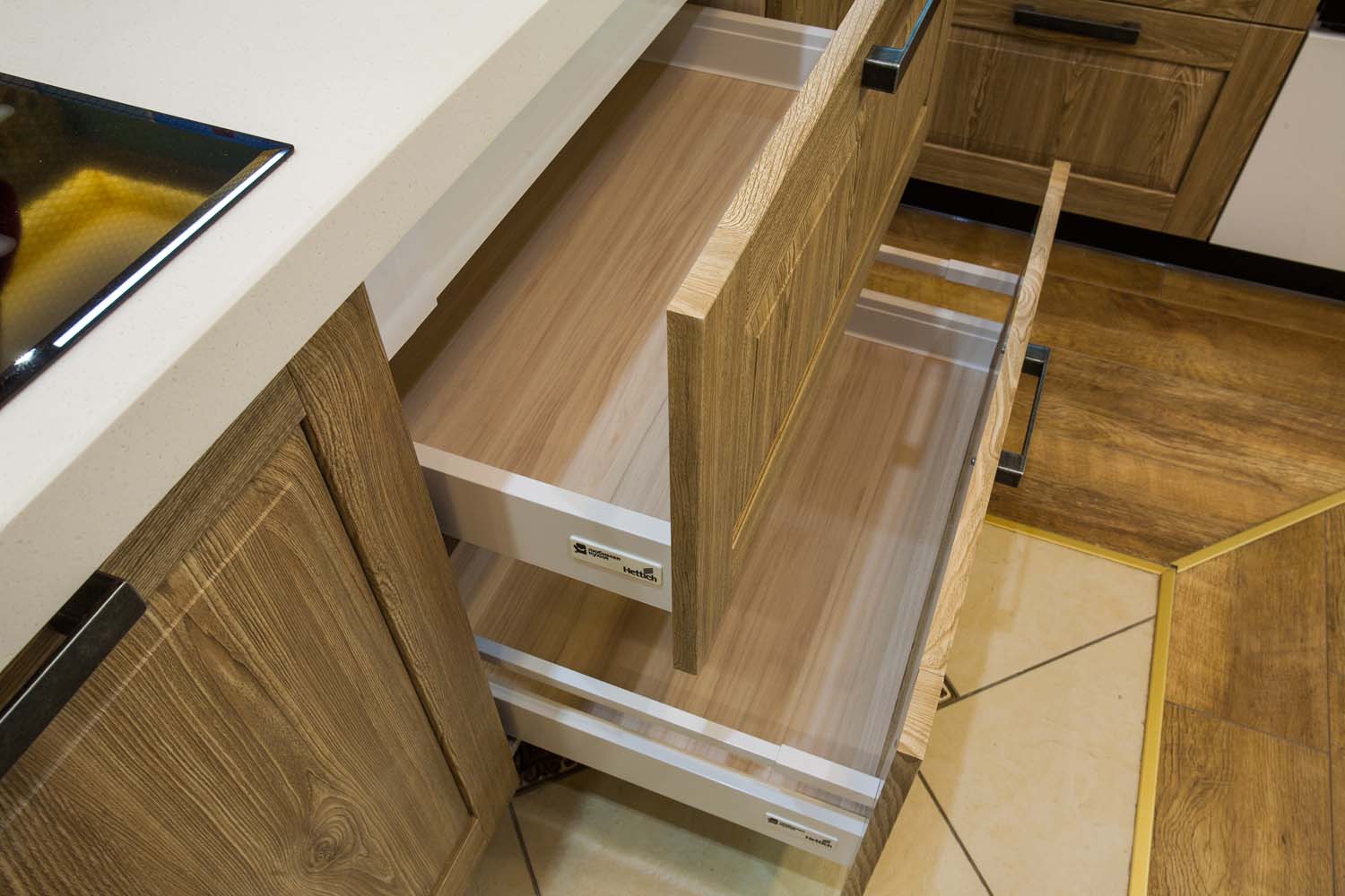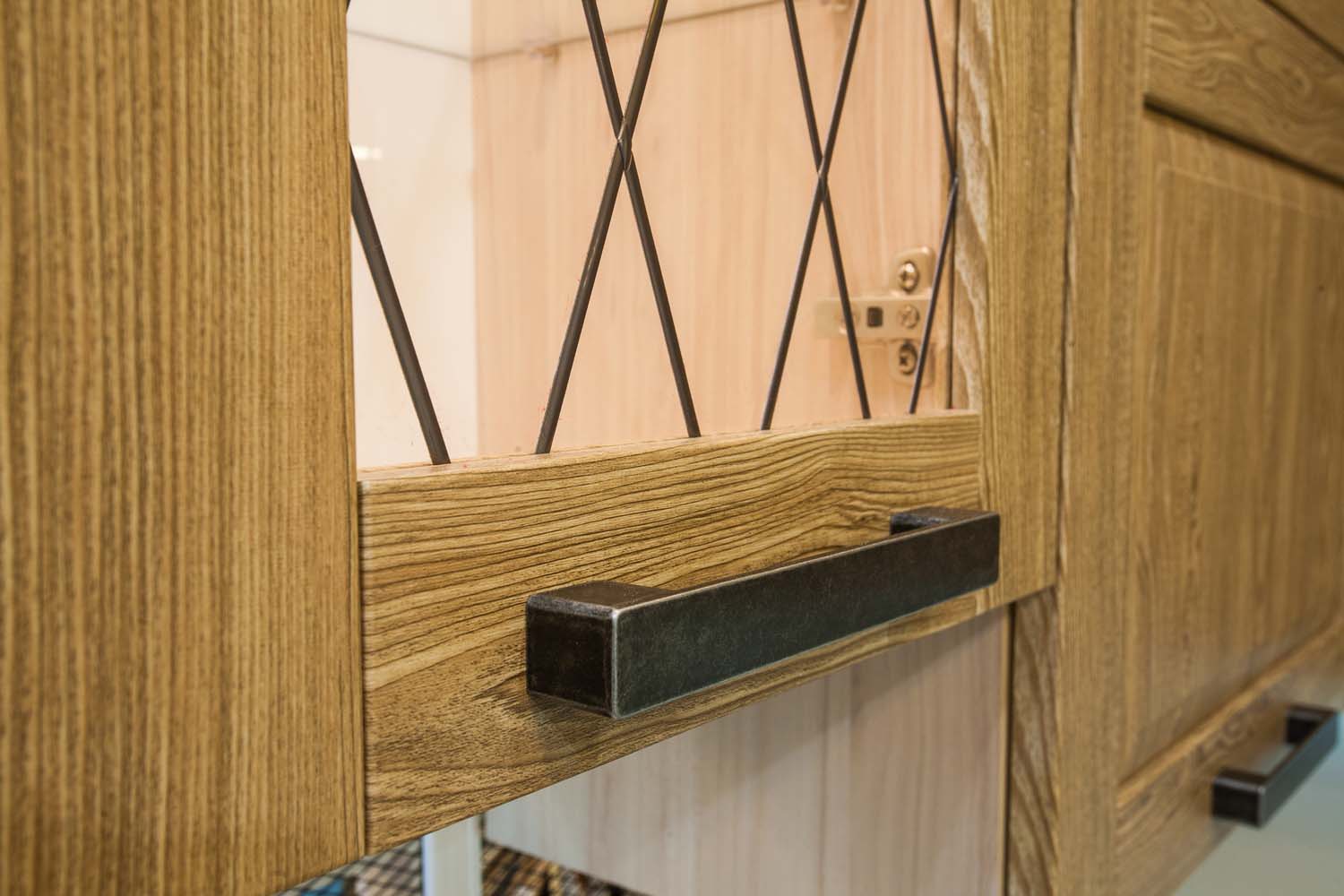 Сочетание современного стиля и кантри вбирает достоинства обоих направлений. Фактура грубого дерева с глянцевыми гладкими поверхностями придется по вкусу и приверженцам классики, и любителям современного стиля.