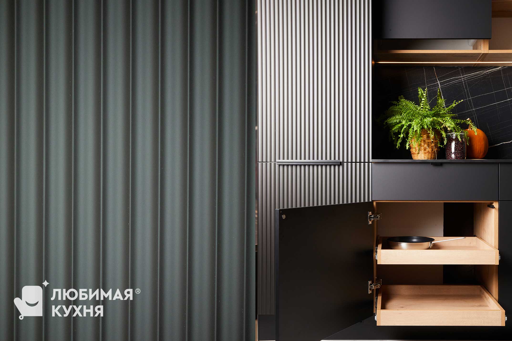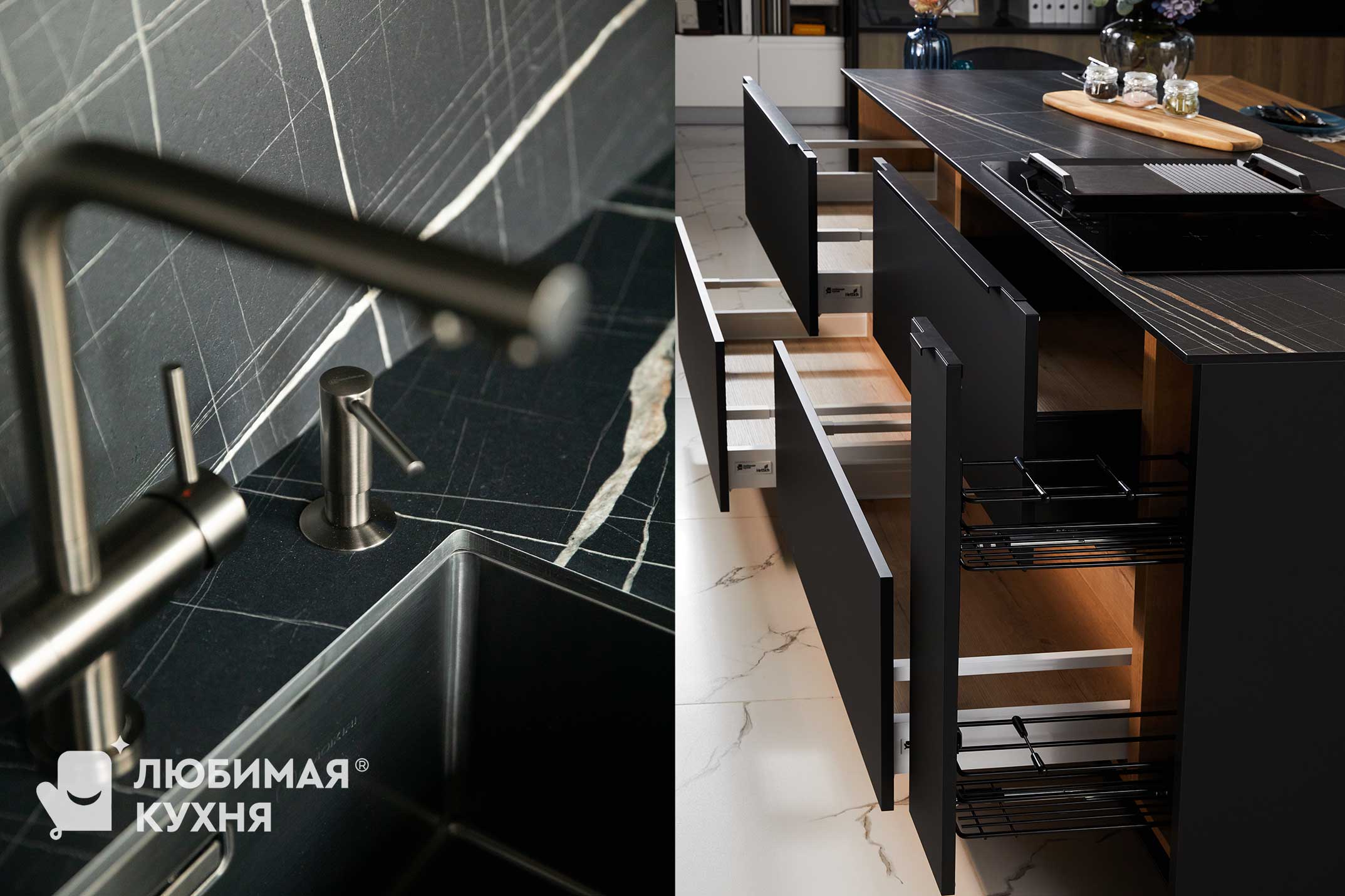 Брутальность и четкость линий кухни Брунн, а так же сочетание разных фактур и материалов образует неповторимое сочетание.