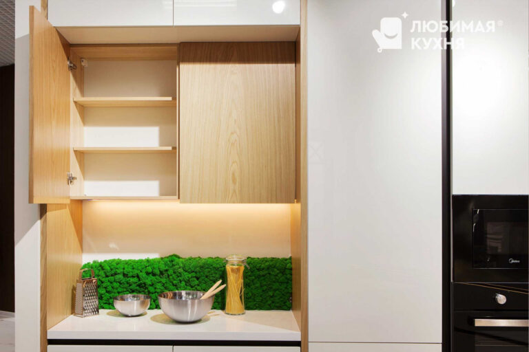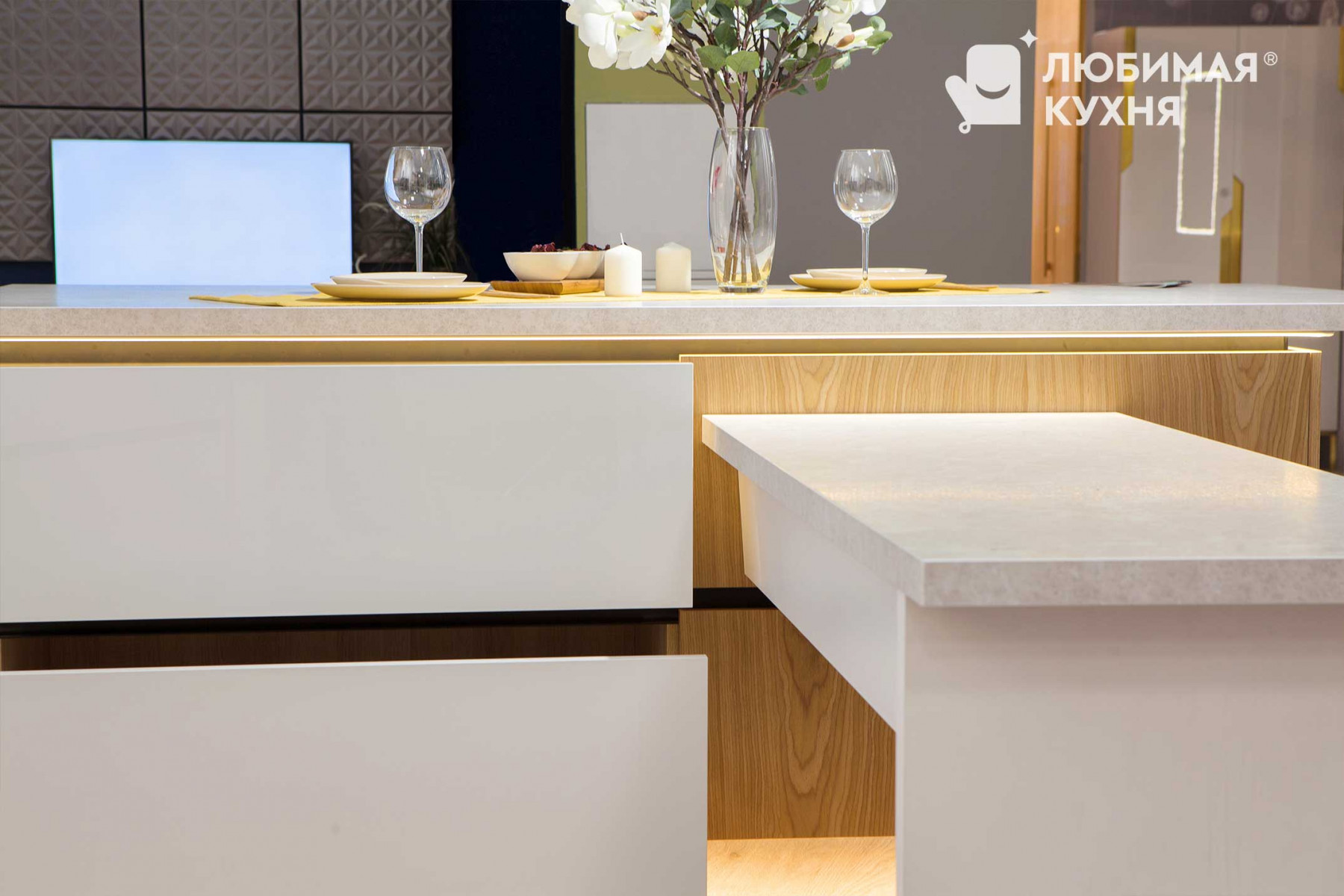 акрил Gloss White, коллекция Ecolux / МДФ в шпоне Дуб 624С под матовым лаком