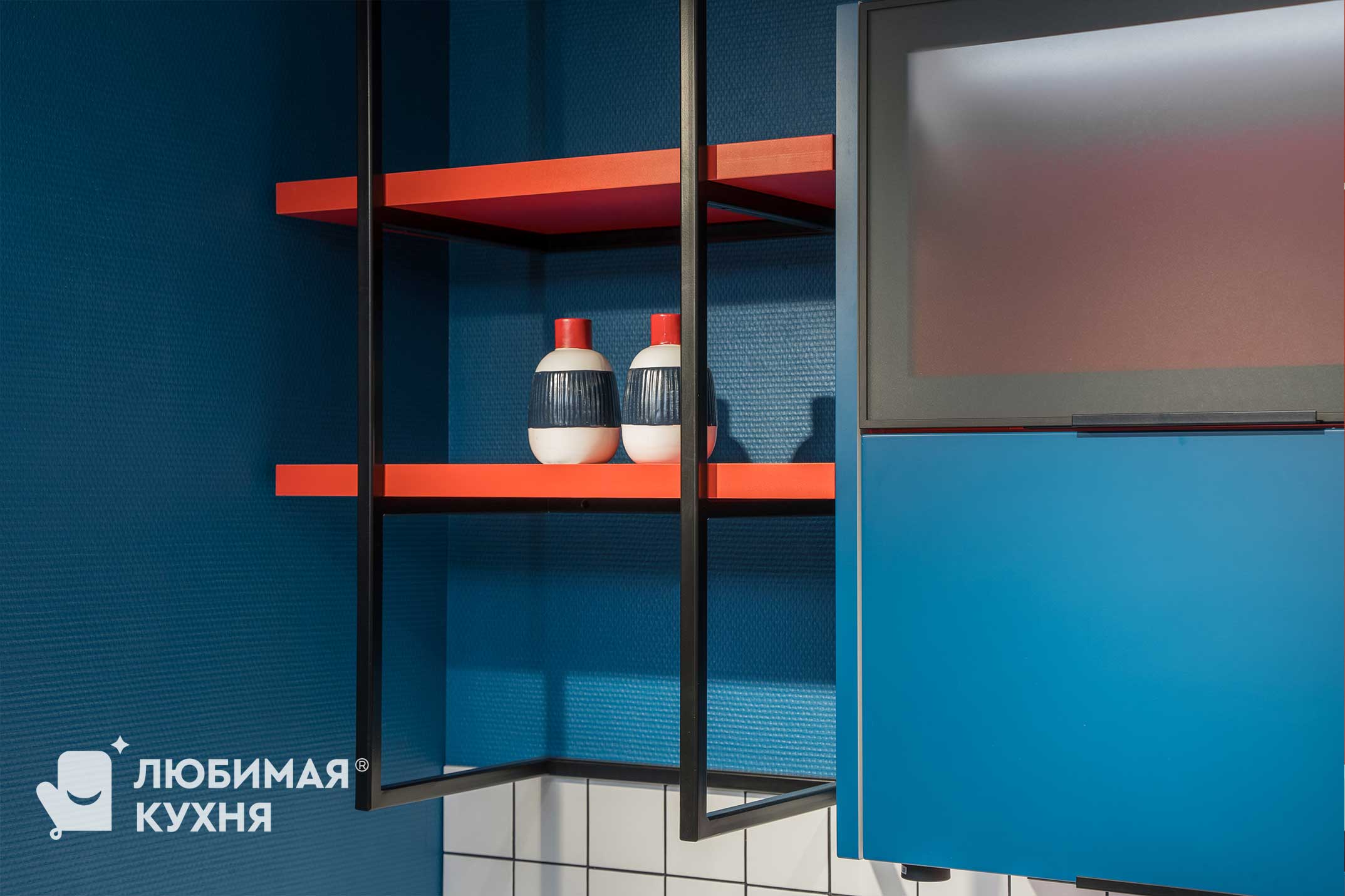 Яркая, стильная кухня — выбор для самых смелых! Фасады цвета индиго с красным корпусом и холодильником — создают невероятное сочетание. Для тех, кто не боится добавить в свои будни яркости и уж точно не быть как все!