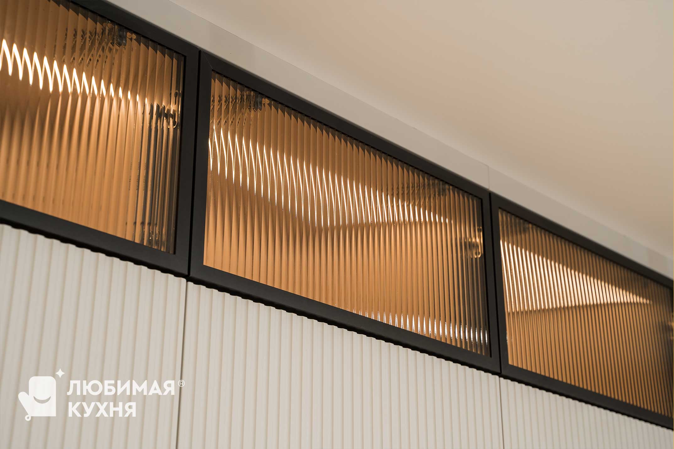 Кухня бестселлер! В ней идеально все — бежево-серые фасады, черная алюминиевая рамка со стеклом, рифленые фасады — кухня мечта! Удачная компоновка обеспечивает легкий доступ ко всему необходимому, благодаря чему готовка превращается в одно удовольствие. Сдержанная палитра цветов и матовые фасады обеспечит легкость в уборке и сдержанность, алюминиевые рамки создадут акцент и придадут легкость конструкции!