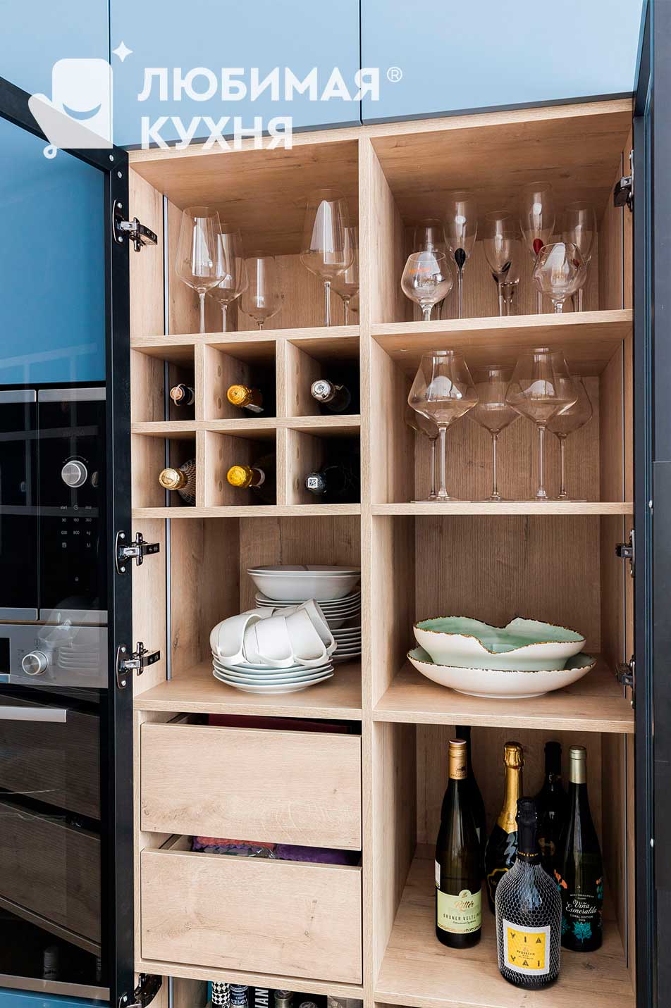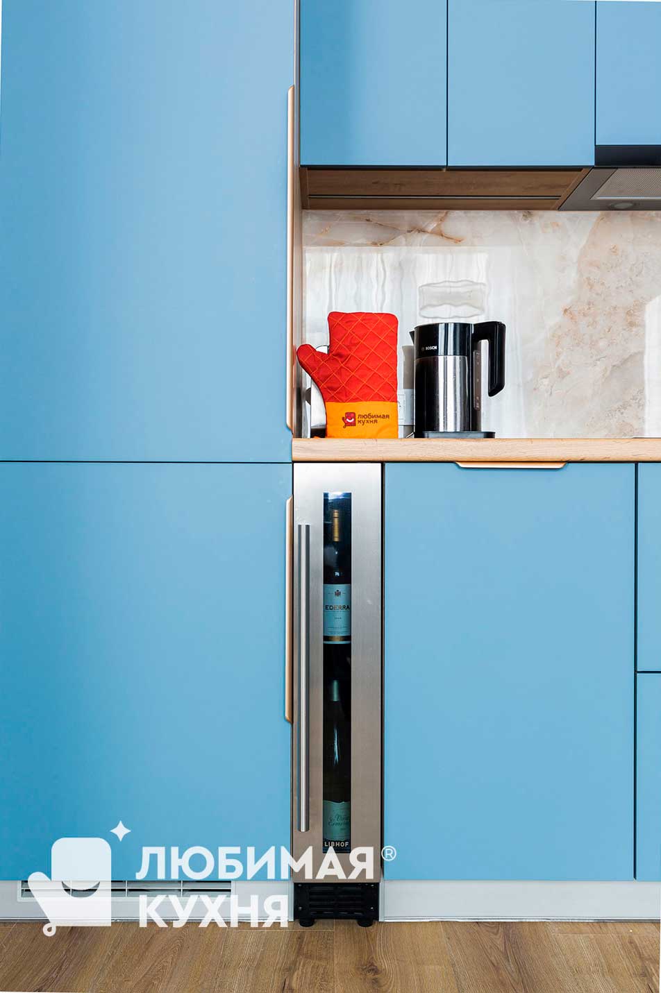 Названная в честь самого синего города на земле. Поражает и влюбляет глубиной дымчато-голубого цвета. А идеально подходящий для домашних вечеринок винный шкаф с подсветкой станет настоящим украшением дома.