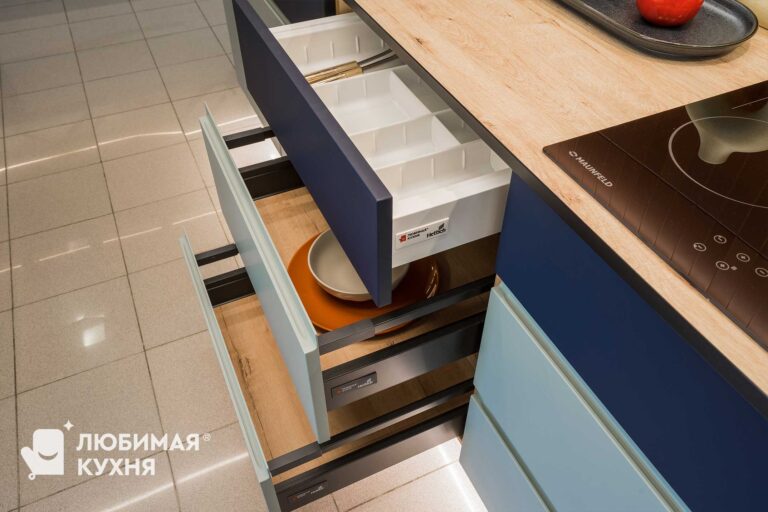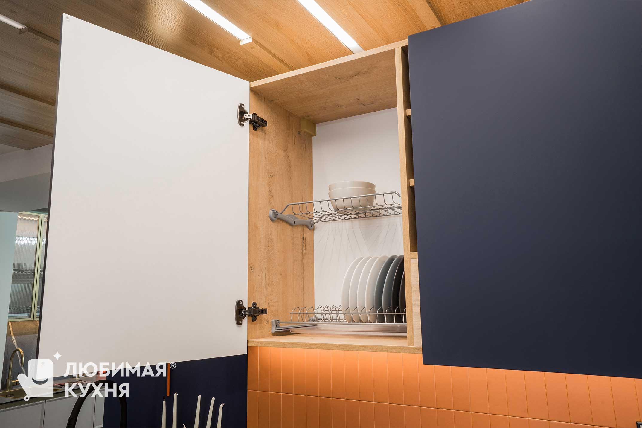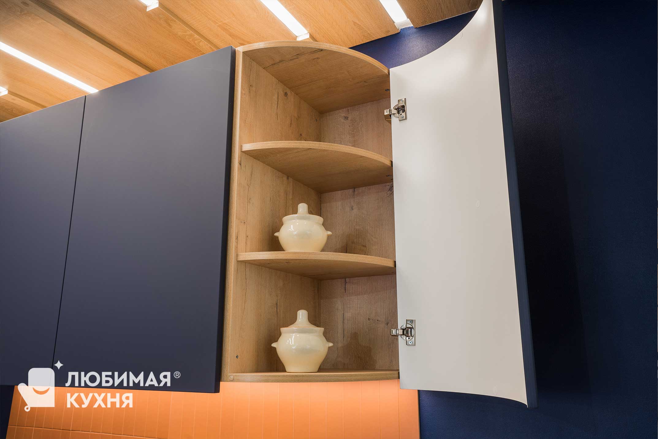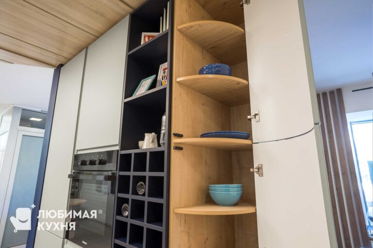 Кухня с невероятным сочетанием зеленого с синими и терракотовыми вставками представляет собой современное и креативное пространство. Скругленные углы в пространстве интерьера создают более гармоничную обстановку и способны снимать напряжение и успокаивать. Каждый день, проведенный на этой кухне, наполняет вас энергией и вдохновением, позволяя создавать кулинарные шедевры.