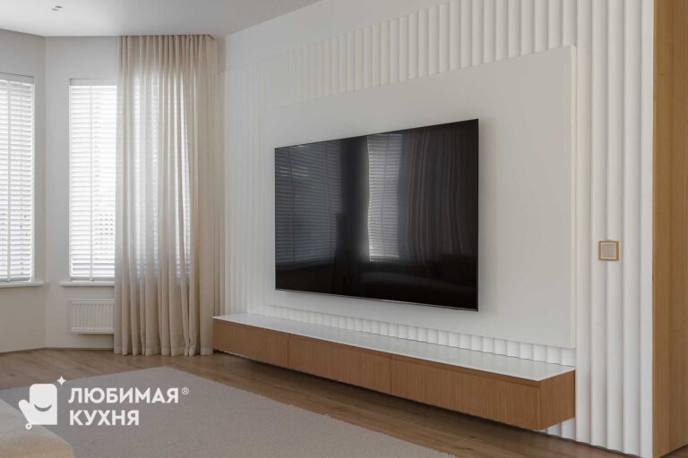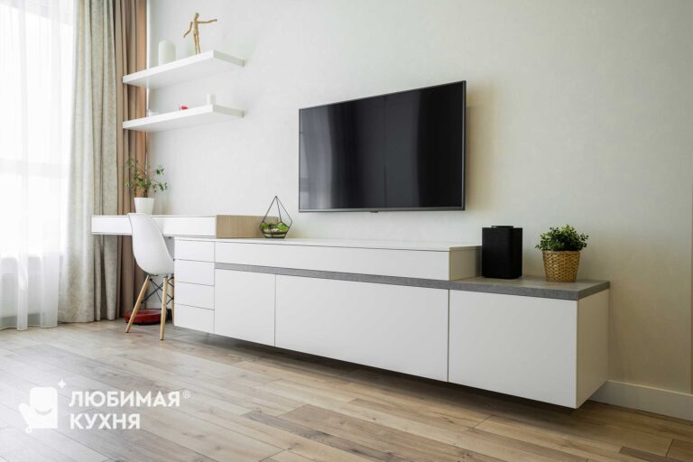 На собственном производстве мы готовы реализовать любые дизайн-проекты встроенной, корпусной мебели для гостиной