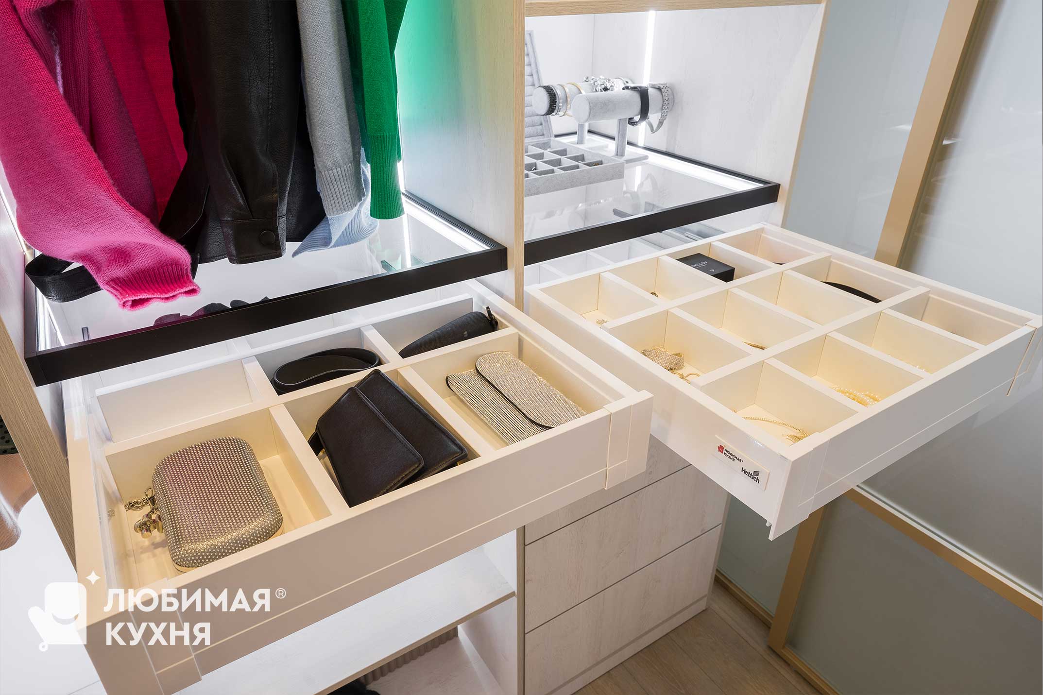 Внутренне наполнение: ящики Hettich Atira, полки с подсветкой Аристо