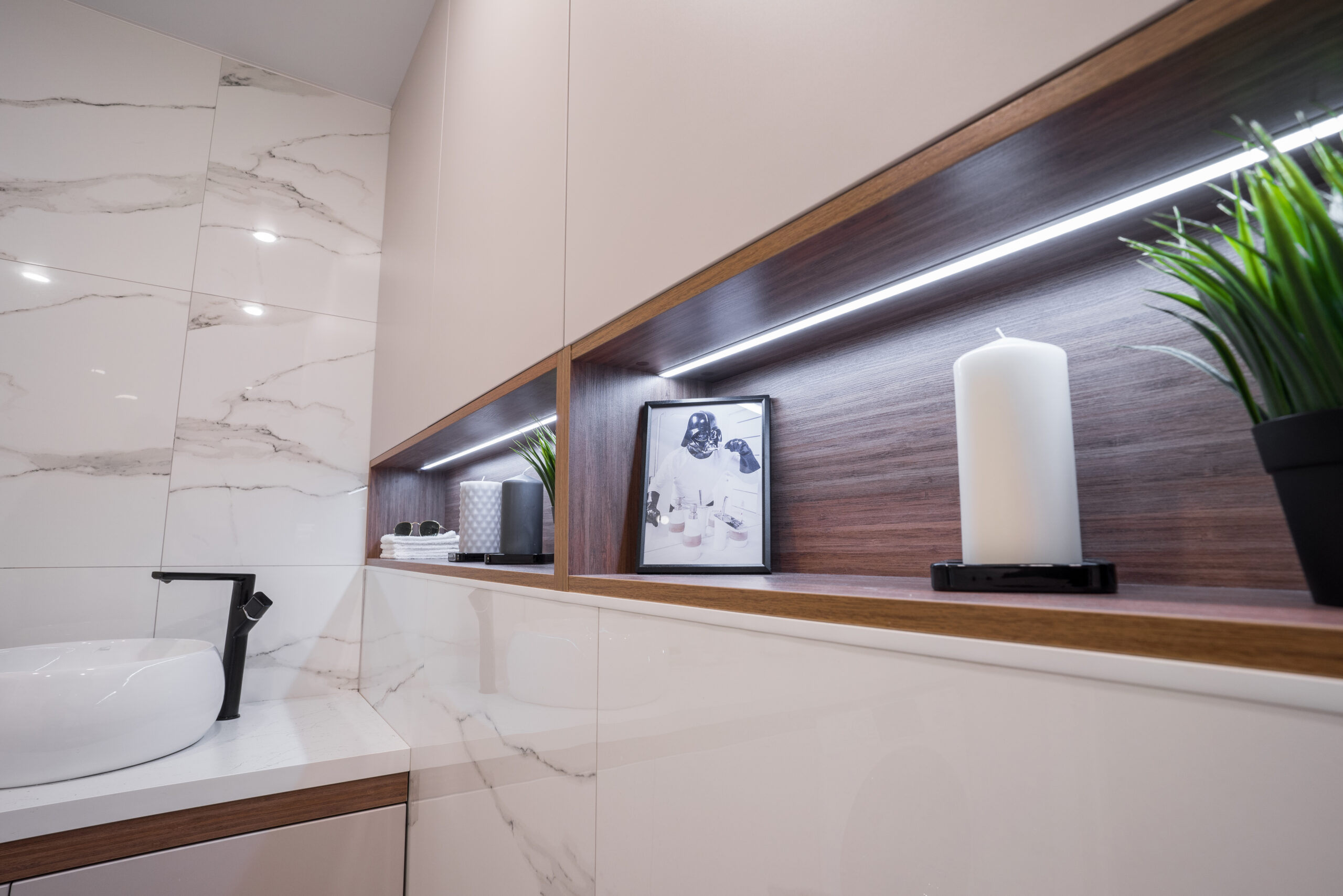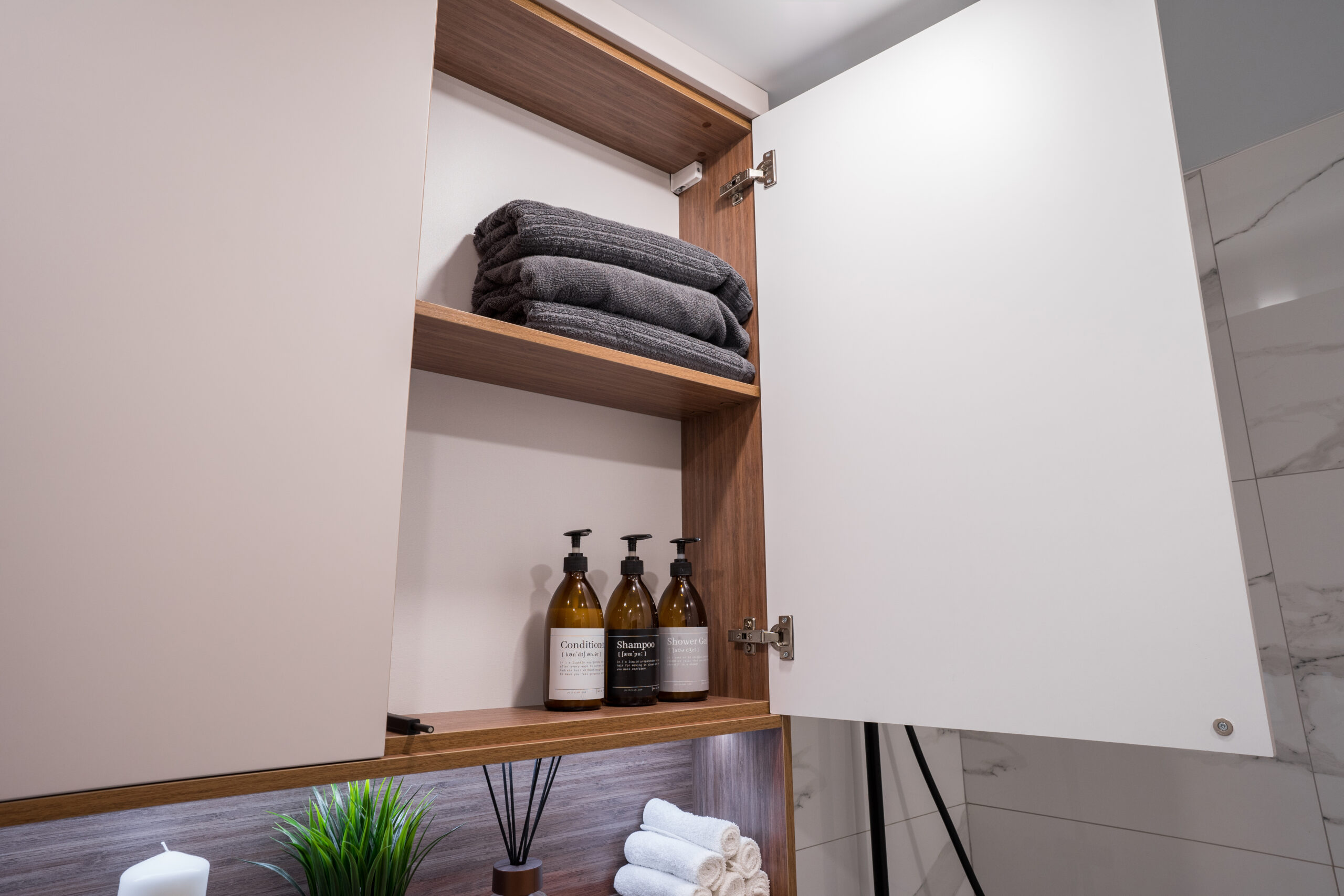 АмелиШкафы для санузла очень стильный и современный, без ручек и лишних деталей и с тактильно очень приятным материалом.