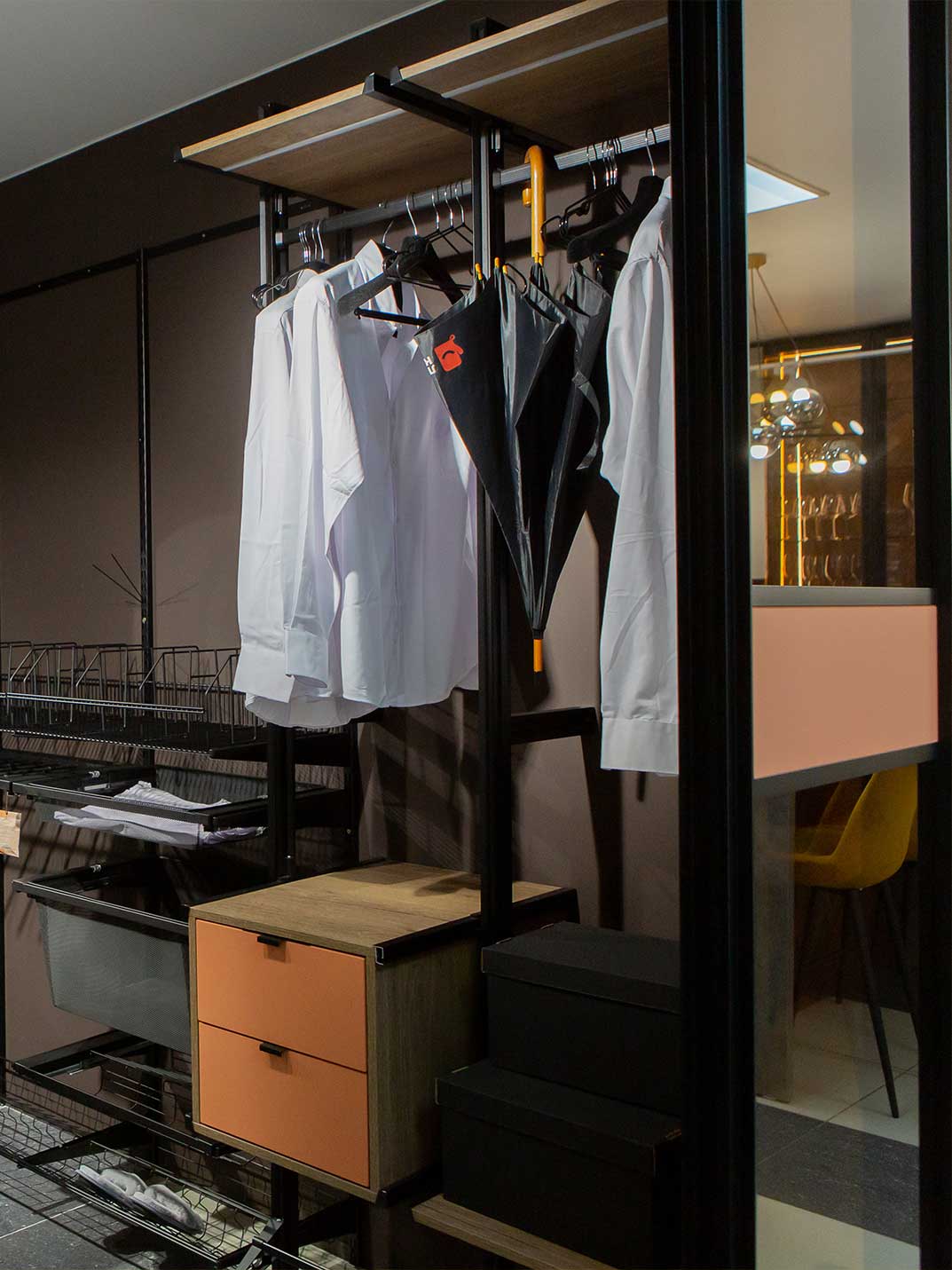 Гардеробная комната — отличное решение для размещения вещей, бытовой техники и много другого. В гардеробную можно спрятать то, что хочется спрятать от глаз и сделать это максимально эффективно. Гардеробная система отлично помогает справиться с этой задачей. Вы сможете спланировать пространство именно под ваши нужды!