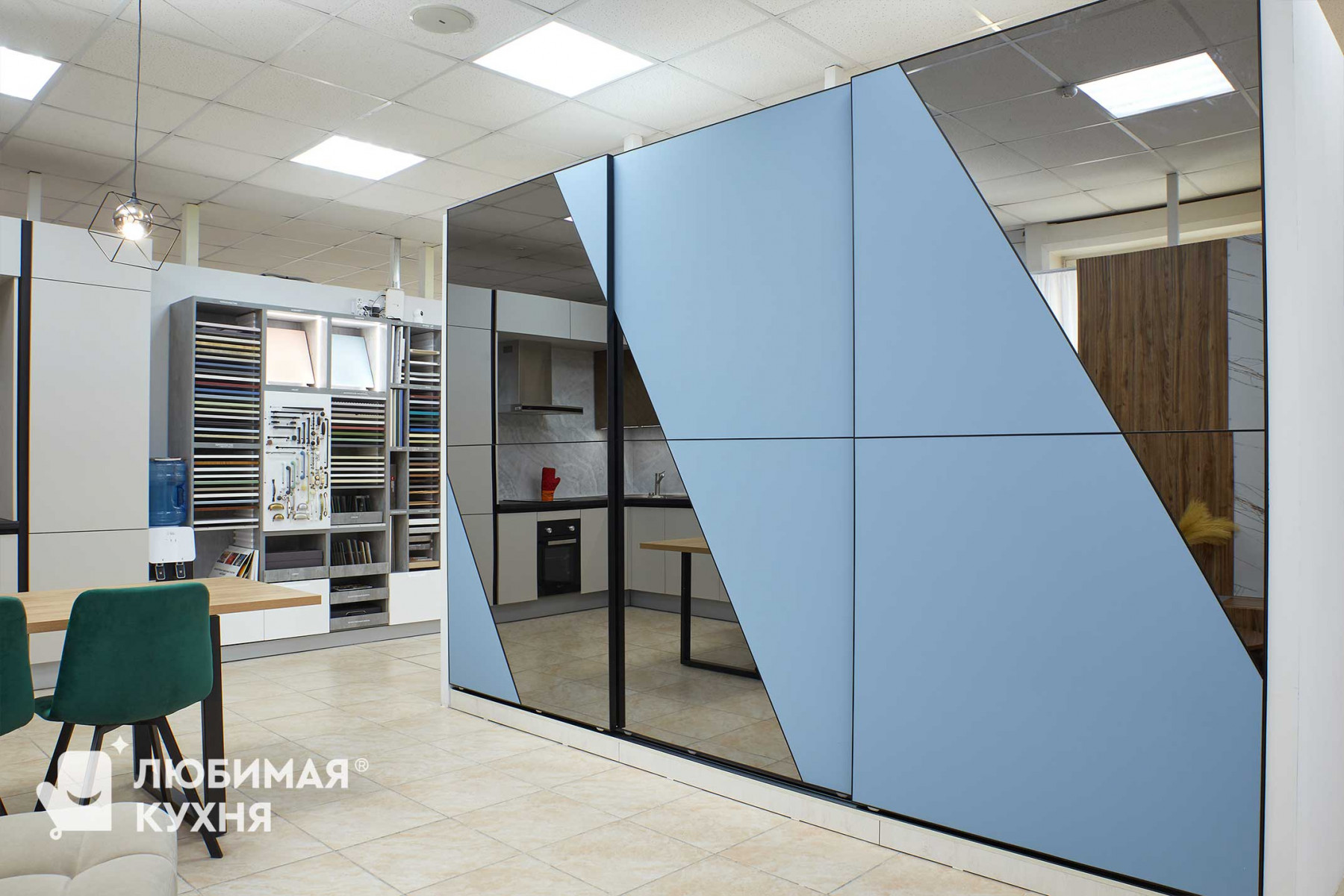 Двери: Зеркало графит и EvoGloss цвет Матовая морская волна. Профиль «Аристо Нова», цвет черный матовый.