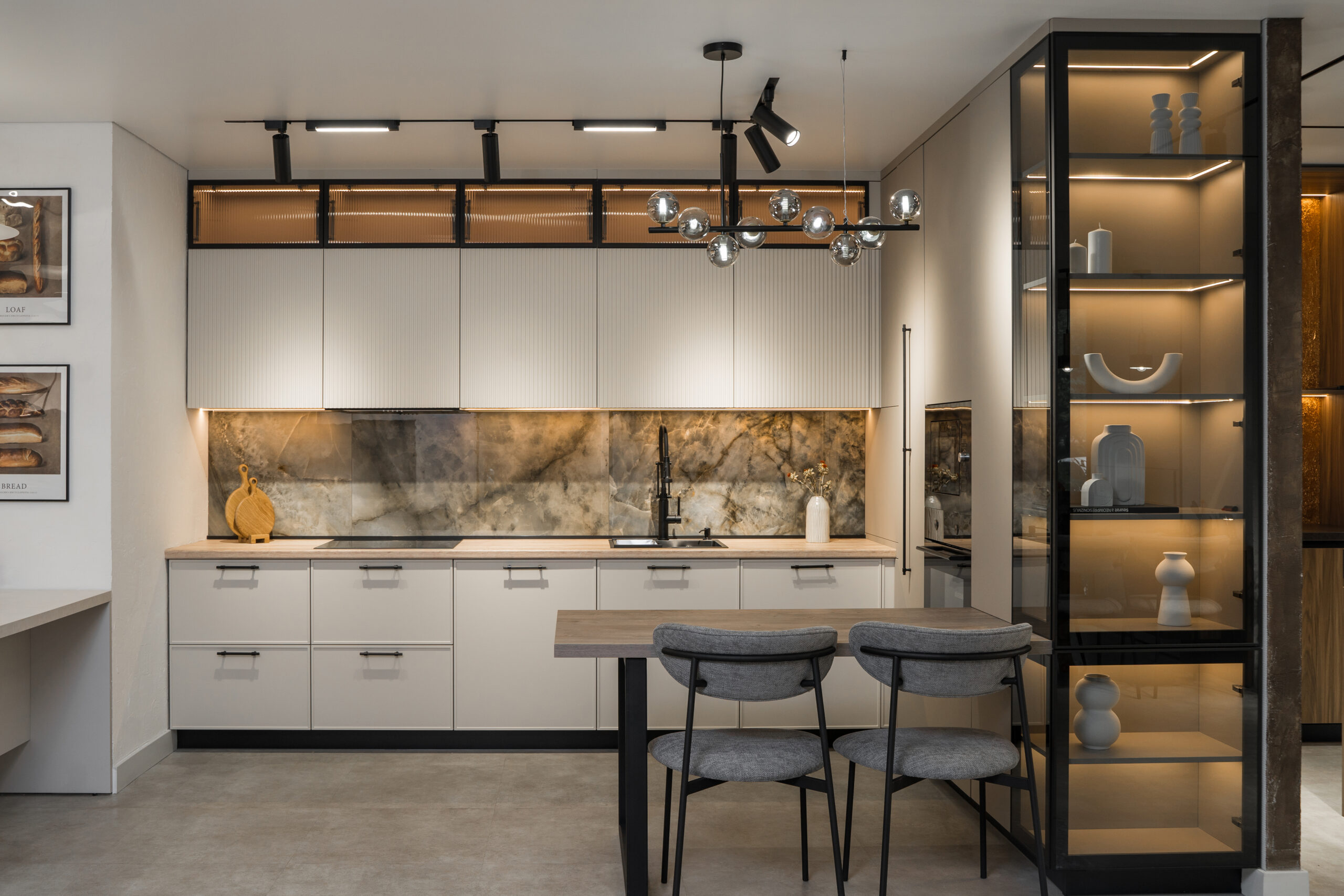 Стиль: Джапанди, Дизайнерские, Кухни без ручек