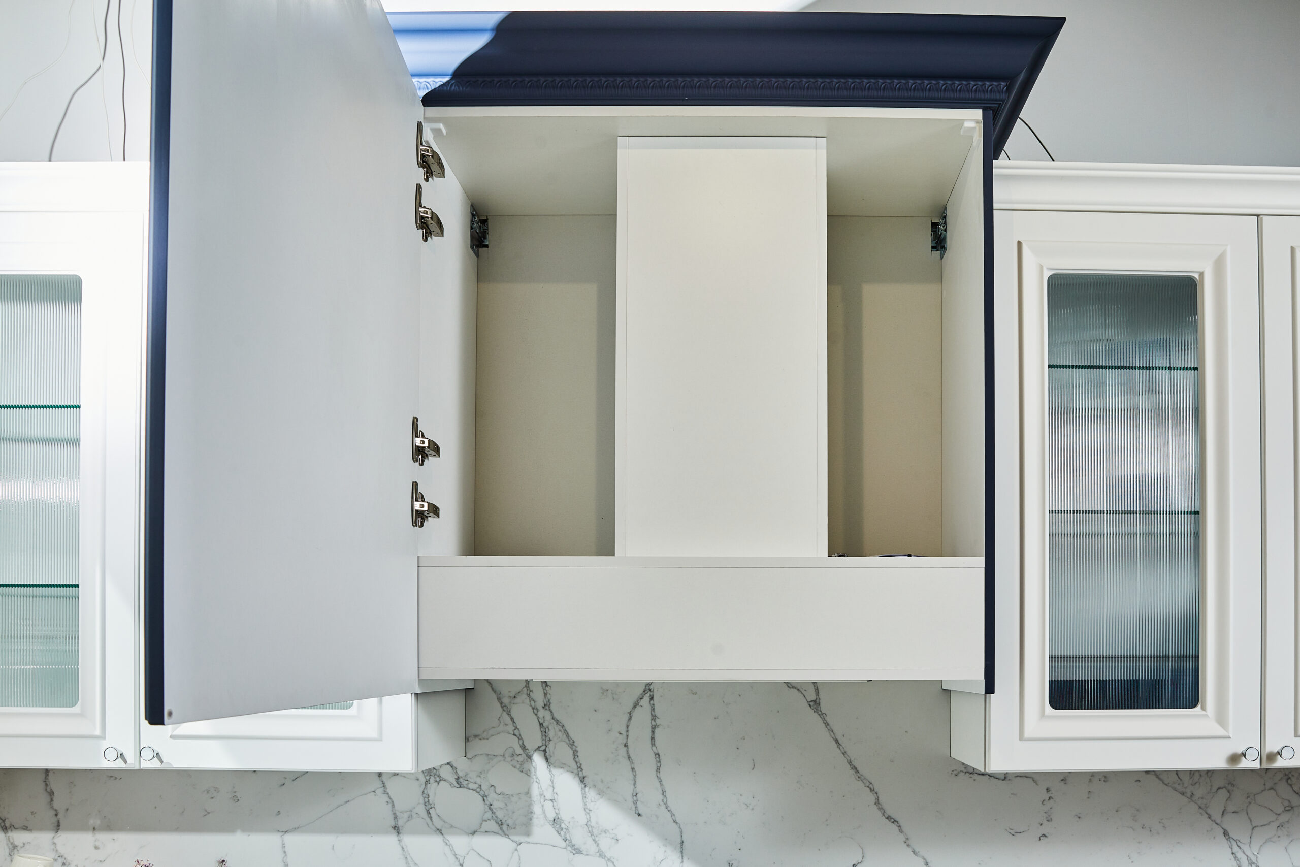 Обеспечиваем дополнительное место хранения в шкафах со встроенной вытяжкой