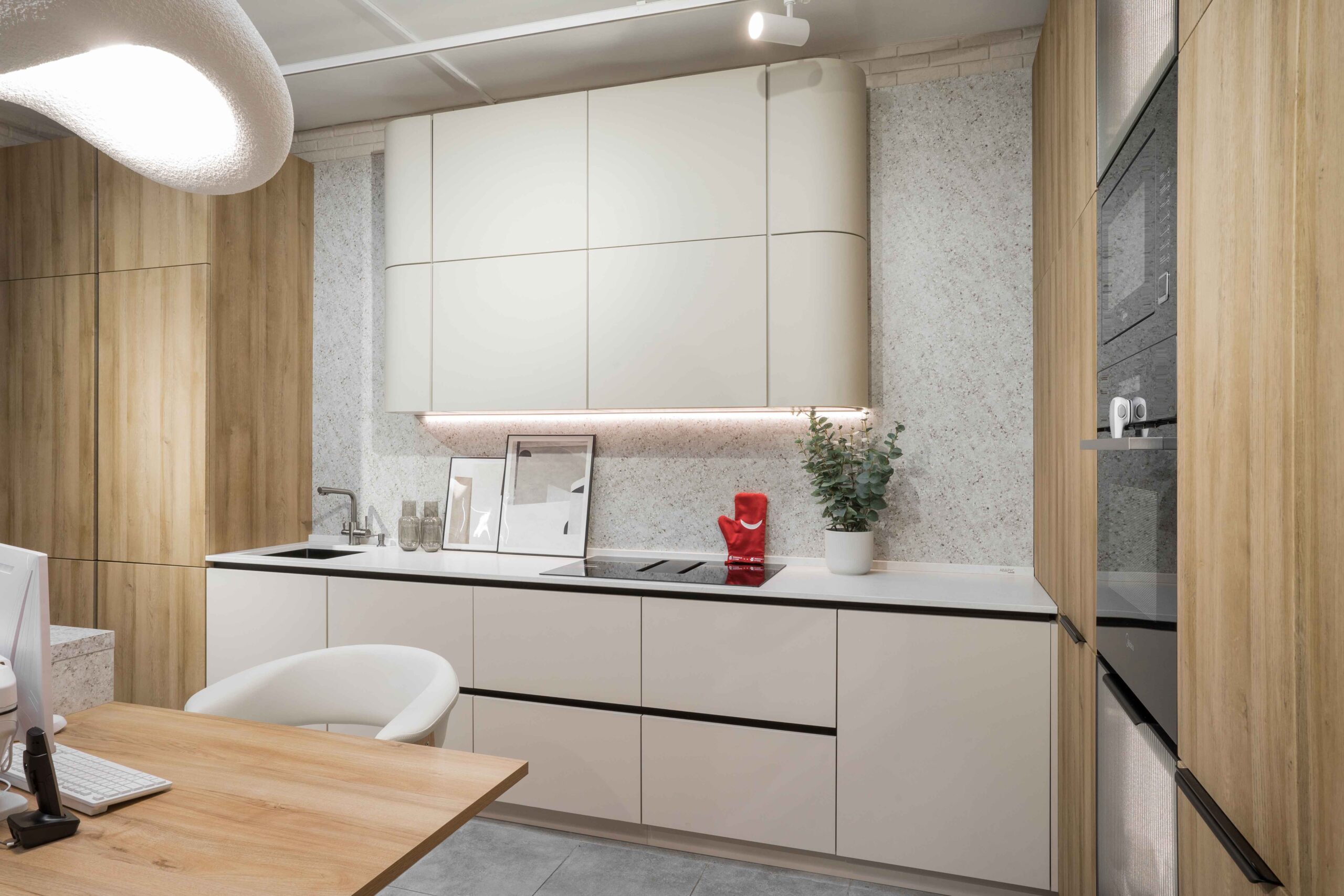 В одном проекте мы слёгкостью объединяем разные цветовые решения корпуса кухни