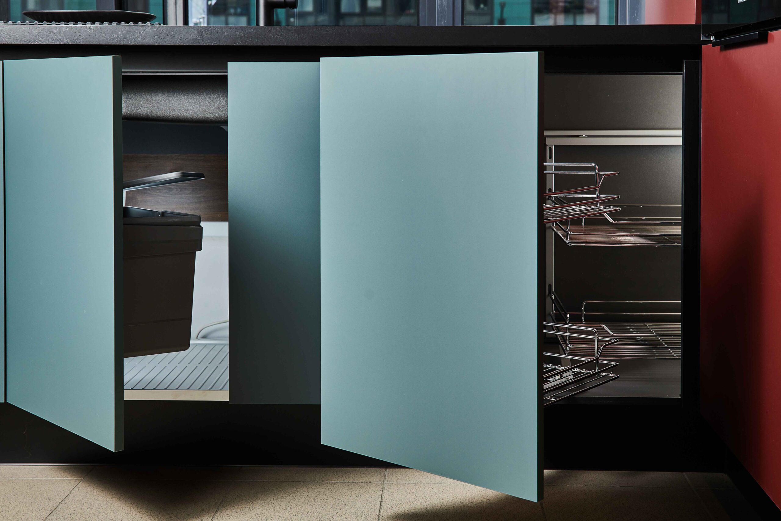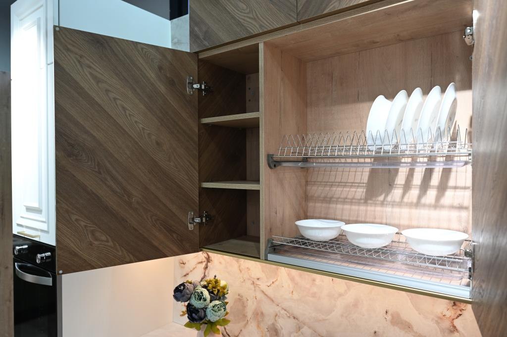 Фасады имеют отверствие для силиконового демпфера, который обеспечивает минимальный шум при соприкосновении двери с корпусной части кухни
